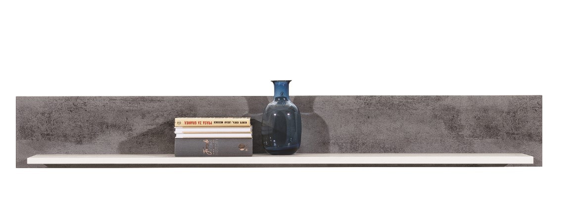 Nástěnnou polici Brando nabízíme z lamina v dezénu bílý lesk / beton. Korpus vrchní desky má sílu 16mm, hrany chrání ABS 0,5mm. Zboží dodáváme v demontu.