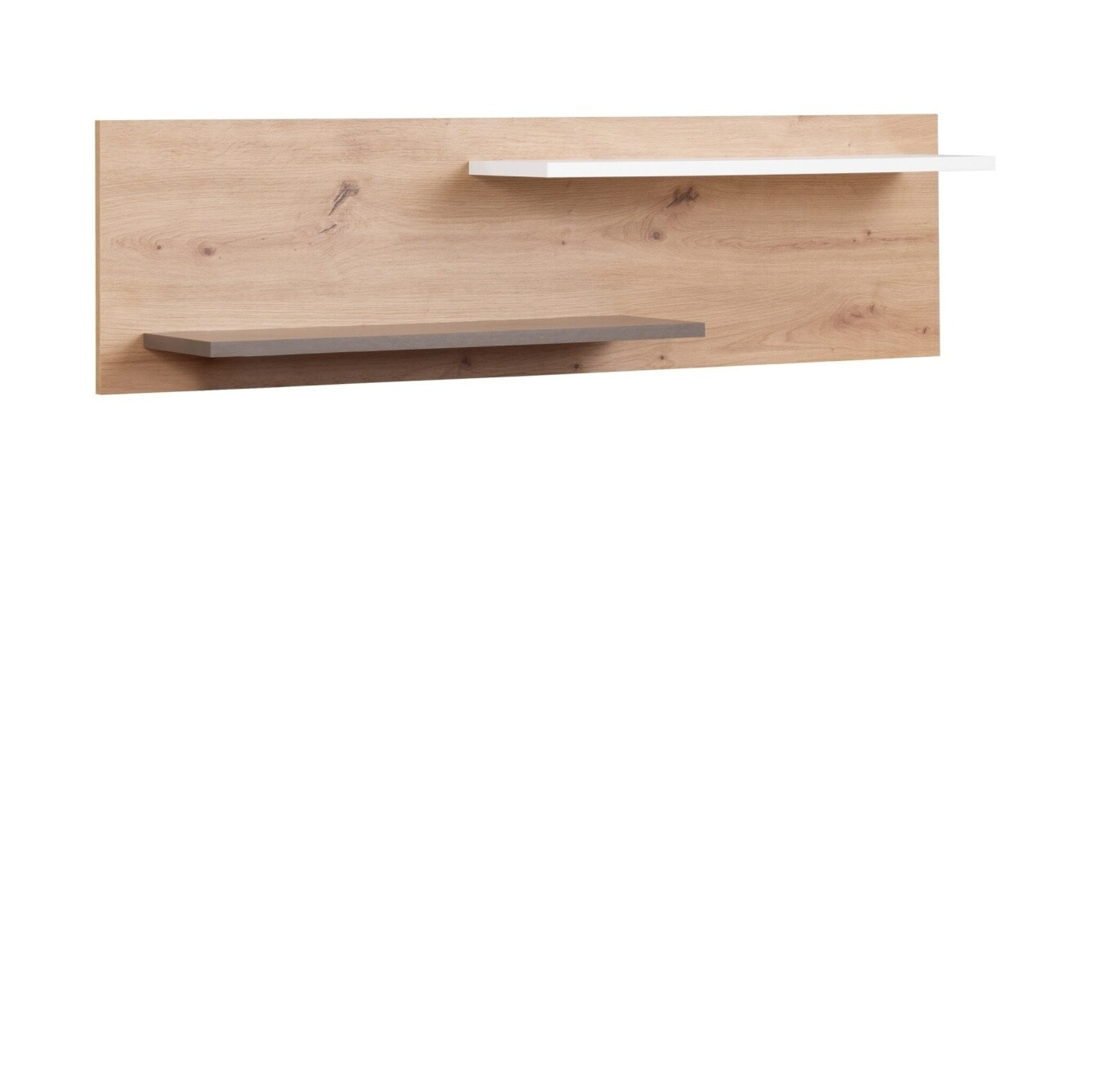 Police ze systému Kevin má konstrukci z lamina, tl. 16 mm a hrany ABS 0,6 mm. Konstrukce v dekoru dub artisan, přední díly v dekoru grafit/ bílý mat. Zboží dodáváme v demontu.