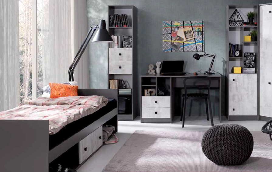 Police je vyrobena z kvalitního lamina v barevném provedení grafit/enigma. Systém TOMMY vyniká svým moderním a nadčasovým designem, obsahuje 13 komponentů, ze kterých si můžete sestavit dětský či studentský pokoj dle svých představ. Zboží je dodáváno v demontu.