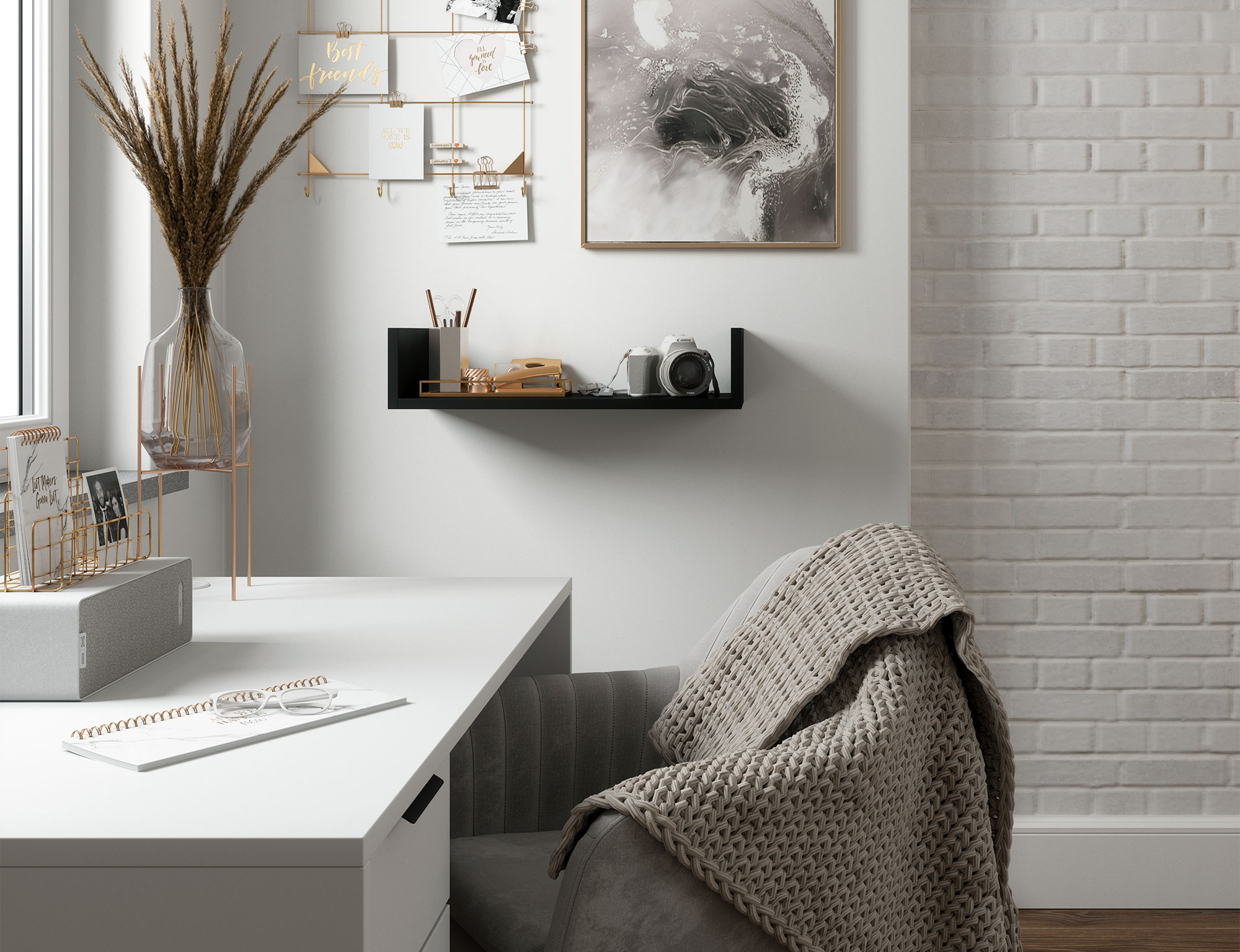 Police Vissta v bbarevném provedení černá je vyrobena z odolné laminované dřevotřísky o tl. 16 mm s PVC hranami. Přípustné zatížení police: 5 kg. Zboží dodáváme v demontu.