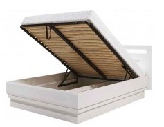 Moderní postel je vyrobena z lamina MDF. Možnost výběru při montáži verze s bílou nebo wenge lištou. Hrany ABS. Korpus je v dezenu bílá. Postel je dodávána s kovovým roštem, má úložný prostor. Zboží dodáváme v demontu.
