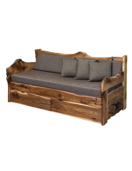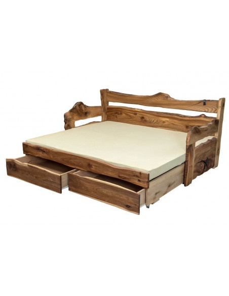 Rozkládací postel v jedinečném originálním designu z jilmového dřeva o síle 40 mm s dekorační kresbou struktury dřeva s povrchovou úpravou olejovosk. Kvůli unikátnosti jilmového dřeva nabízíme postel jen v limitovaném počtu. Každý kus je jedinečný a nezaměnitelný originál. Cena je včetně roštů. Matrace nejsou součástí. Možno přiobjednat matraci UNI DUO. Postel nabízí 3 varianty využití - sedačka, jednolůžko, dvoulůžko (180x200/160x200 pro příležitostní spaní).