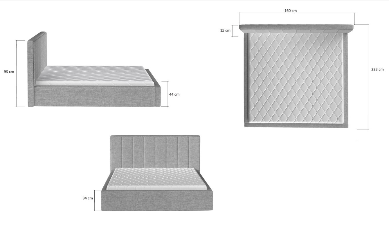 Postel Audrey je jednoduchý kus nábytku obohacený o zajímavé čelo postele v dezénu Dora 96 (tmavě šedá). Až 93 cm s měkkým a elegantním povrchem vytváří nejen dekorativní funkci, ale také velkou plochu, kterou lze použít jako oporu při večerním sezení. Postel je s kovovým rámem a plynovým zvedákem, díky čemuž získáváme nádobu na ložní prádlo, kterou lze snadno a tiše zvednout bez použití síly. Svislé prošívání perfektně zapadne do interiérů ovládaných geometrickými doplňky. Součastí postele není matrace a doplňky uvedené na obrázku. Postel je k dispozici ve čtyřech velikostech. Spací plocha 140 x 200 cm. Zboží dodáváme v demontu.