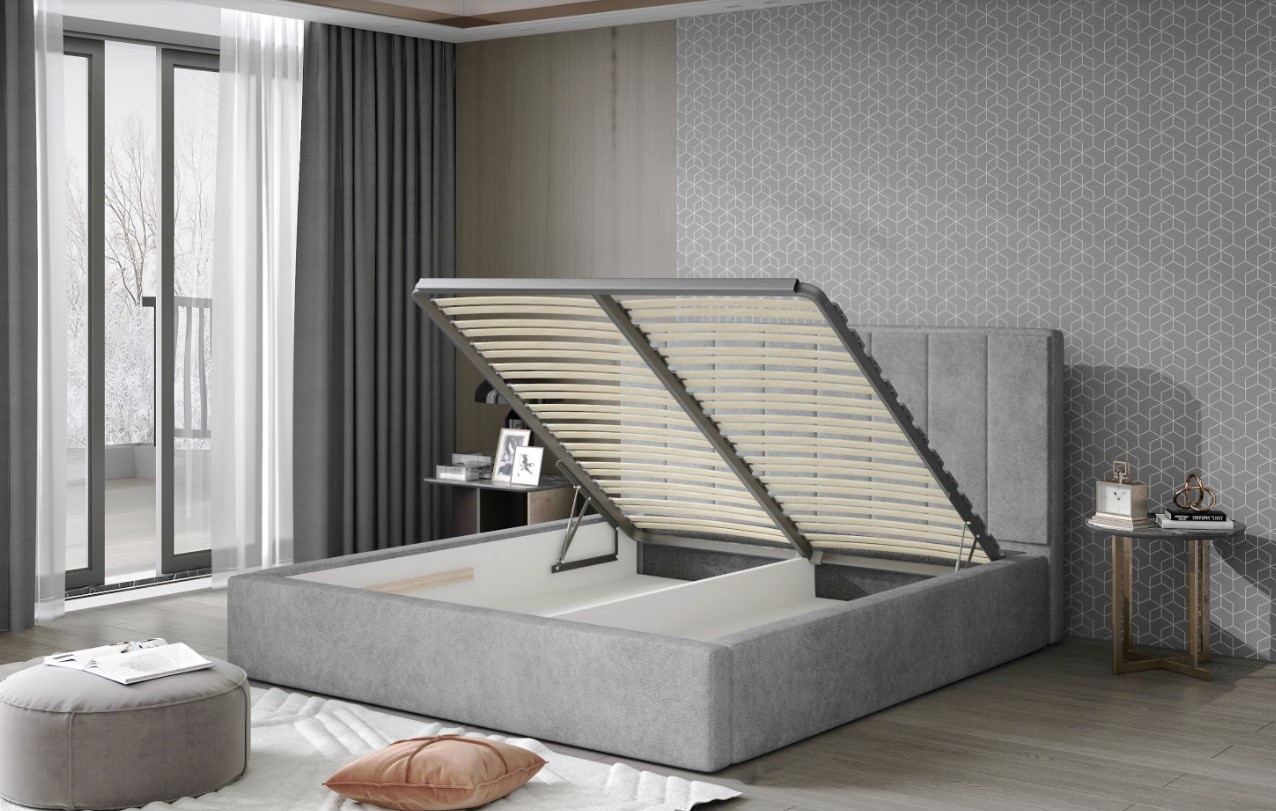 Postel Audrey je jednoduchý kus nábytku obohacený o zajímavé čelo postele v dezénu Kronos 19 (zelená). Až 93 cm s měkkým a elegantním povrchem vytváří nejen dekorativní funkci, ale také velkou plochu, kterou lze použít jako oporu při večerním sezení. Postel je s kovovým rámem a plynovým zvedákem, díky čemuž získáváme nádobu na ložní prádlo, kterou lze snadno a tiše zvednout bez použití síly. Svislé prošívání perfektně zapadne do interiérů ovládaných geometrickými doplňky. Součastí postele není matrace a doplňky uvedené na obrázku. Postel je k dispozici ve čtyřech velikostech. Spací plocha 160 x 200 cm. Zboží dodáváme v demontu.