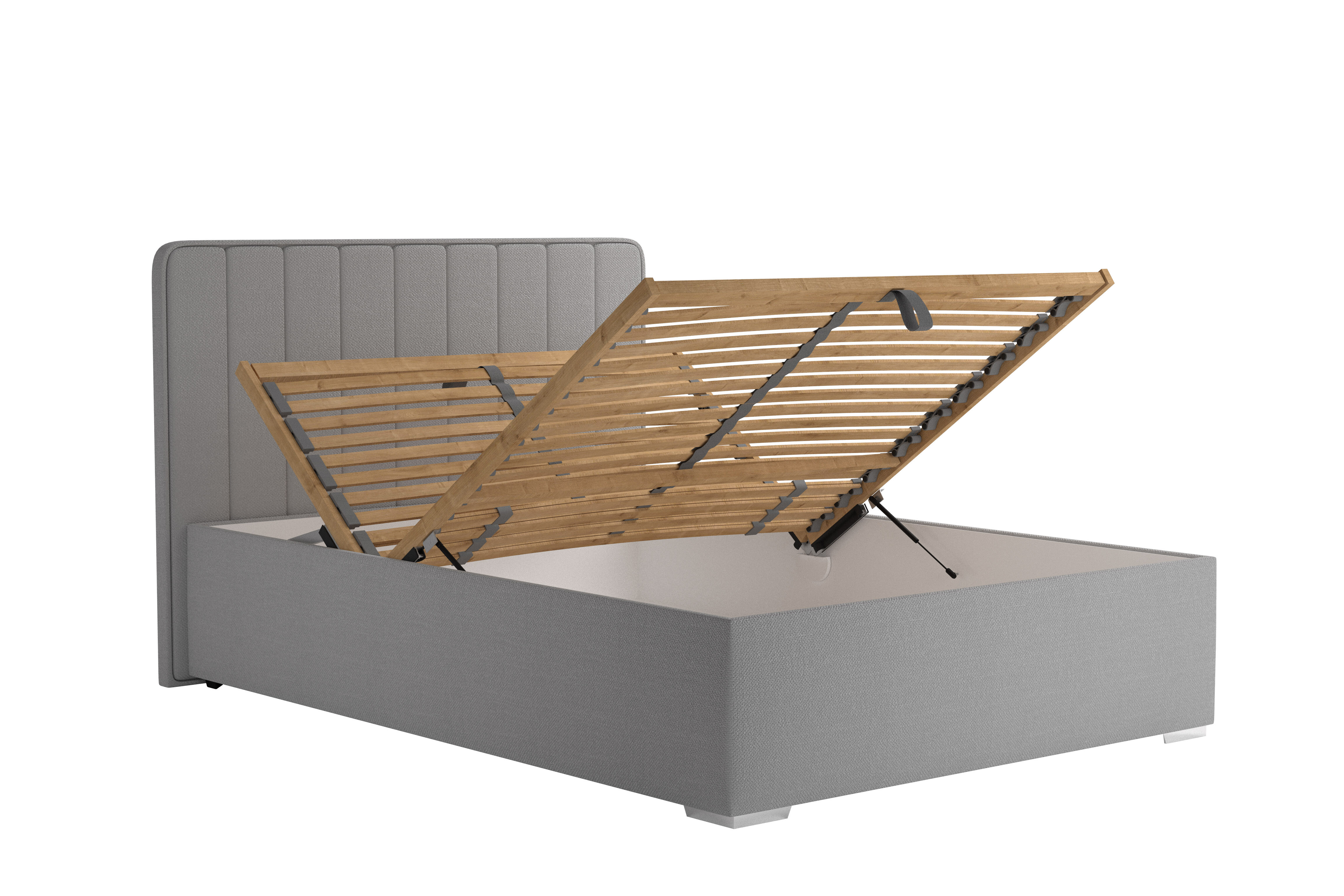 Postel August je nabízena s elegantními dřevěnými nožkami o výšce 3.5 cm a designově zdobeným čelem v potahové látce dle výběru. Disponuje úložným prostorem s přístupem z boku a je dodávána s matrací Nelly plus. Doporučená nosnost roštu 110 kg. Výška lehací plochy s matrací je 52.5 cm.