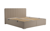 Postel je nabízena s elegantními dřevěnými nožkami o výšce 10 cm v potahové látce dle výběru. Postel disponujeme polohovacími rošty. Postel disponuje úložným prostorem. Doporučená nosnost roštu 130 kg. Výška lehací plochy bez matrace 37 cm.