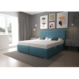 Čalouněná postel v barevném provedení Trinity 13. Součástí postele je kvalitní lamelový rošt a matrací Nelly. Velký úložný prostor přístupný ze stran lůžka. Výška nožiček je 3,5 cm. Doporučená nosnost 110 kg/ os.Výška lehací plochy s matrací 52,5 cm.