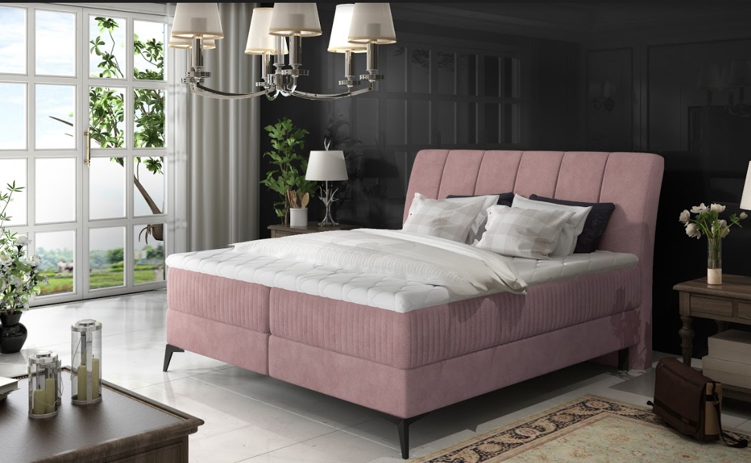 Díky kombinaci pohodlí s elegancí se v posteli probudíte velice odpočinutí a svěží. Postel je potažená materiálem příjemným na dotek, odolným proti oděru a vyblednutí. Postel je vybavena vysokým, mírně skloněným čelem a černými kovovými nohami o výšce 13 cm. Postel disponuje dvěma úložnými prostory.
