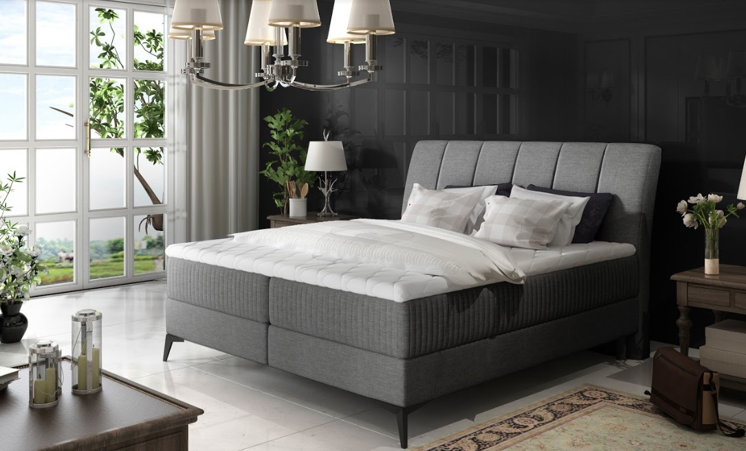 Díky kombinaci pohodlí s elegancí se v posteli probudíte velice odpočinutí a svěží. Postel je potažená materiálem příjemným na dotek, odolným proti oděru a vyblednutí. Postel je vybavena vysokým, mírně skloněným čelem a černými kovovými nohami o výšce 13 cm. Postel disponuje dvěma úložnými prostory.
