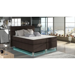 Při výběru postele se rozhodněte pro model, který vám nejen poskytne pohodlný spánek, ale také elegantní vzhled. To vše postel AMADEO splňuje. Masivní konstrukce, vysoká matrace, stylové čelo vybavené přídavnou pěnou T21 a vodorovným prošíváním v kombinaci s vysokými, kovovými, chromovými nohami s vysokým leskem a elegantním čalouněním odolným vůči oděru a nečistotám, poskytuje mimořádný zážitek. Postel disponuje dvěma úložnými prostory. Matrace je vyplněna pružinami bonnel a dvěma dalšími vrstvami pěny T25 umístěnými v horní a dolní části matrace. Maximální komfort zajistí druhá vrstva, přistýlka o výšce 4 cm vyrobená z pěny T21. Součástí postele je LED osvětlení. Potahová látka jako na hlavním obrázku - tmavohnědá látka. Maximální nosnost jedné postele 110 kg.