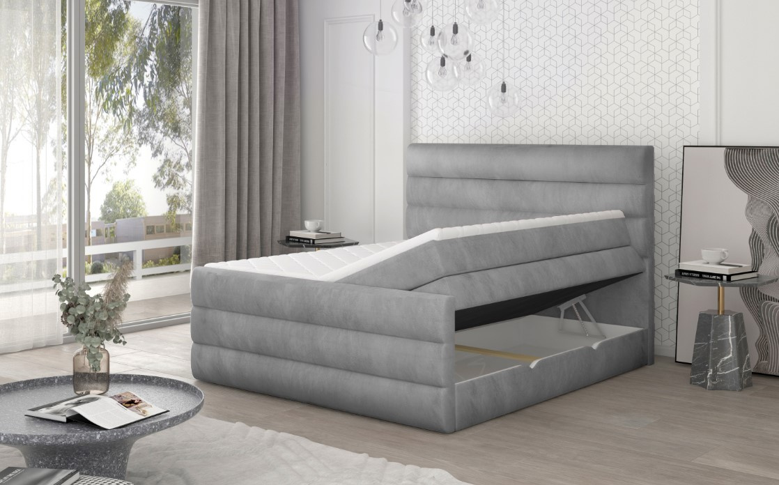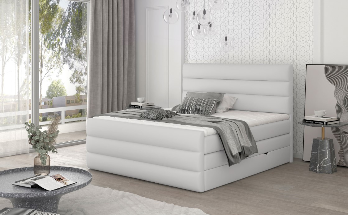 Moderní postel Cande s minimalistickým designem zdoben vodorovným prošíváním. Postel je upevněna na pevné dřevěné krabici s matrací s bonnelovými pružinami a výplň PUR pěnou . Celá postel je pokryta topperem, který eliminuje nepříjemné přerušení uprostřed postele a také zvyšuje pocit pohodlí. Potah topperu je pratelný na 40 st. a je vyrobený z hypoalergenního materiálu. Pro vaši vysněnou ložnici stojí za to zvolit materiály i velikost postele tak, aby zaručovaly odpočinek a relaxaci.