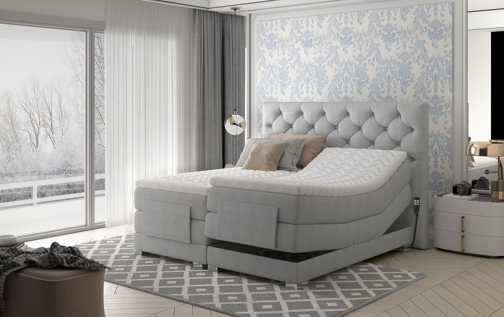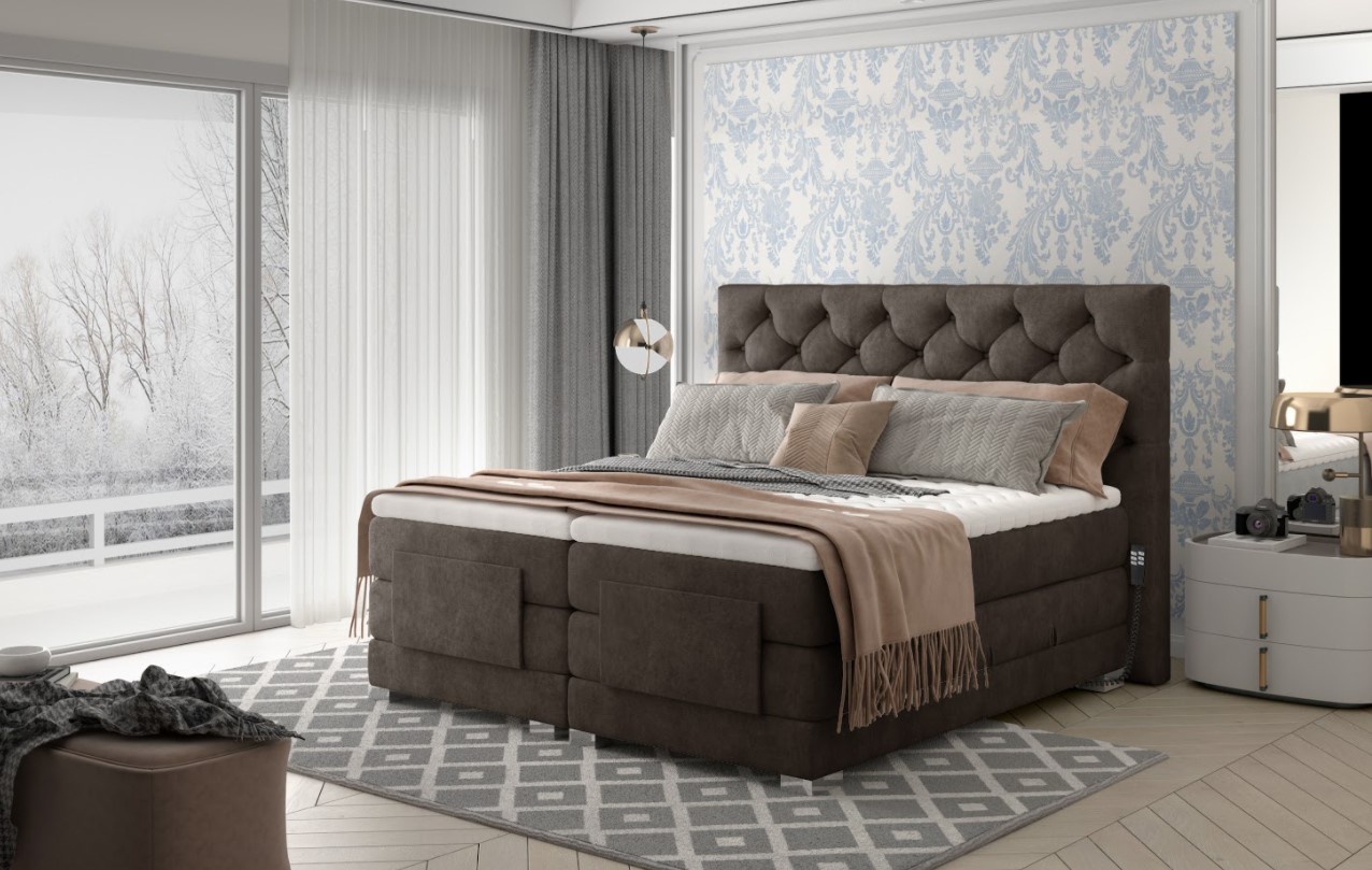 Kontinentální postel Clover s elektrickým ovládáním v dezénu Dora 28 (hnědá) je novým řešením pro lidi, kteří si cení pohodlí na nejvyšší úrovni. Elektrické nastavení umožňuje přizpůsobit výšku matrací individuálním potřebám. Nastavení výšky hlavy a nohou zvyšuje pohodlí a praktičnost celé postele. Nastavitelná postel Clover má tři samostatné matrace pěna T2542+ bonnell, které vytvářejí prostorný prostor na spaní vysoko nad zemí a poskytují vám pohodlí při každodenním vstávání. Matrace jsou ovládány 2 dálkovými ovladači umístěnými na obou stranách postele. Boxspring Clover se stabilizuje na chromovaných nohách, díky čemuž postel vypadá velmi působivě. Tiché a plynulé zvedání zad a nohou praktickým dálkovým ovládáním zaručuje relaxační odpočinek a hluboký spánek. Odolný rám je zcela potažen čalounickou látkou. Vysoké, měkké čelo postele s pravidelným prošíváním vypadá elegantně a moderně a navíc zakrývá zeď. Spací plocha 160 x 200 cm. Zboží dodáváme v demontu.