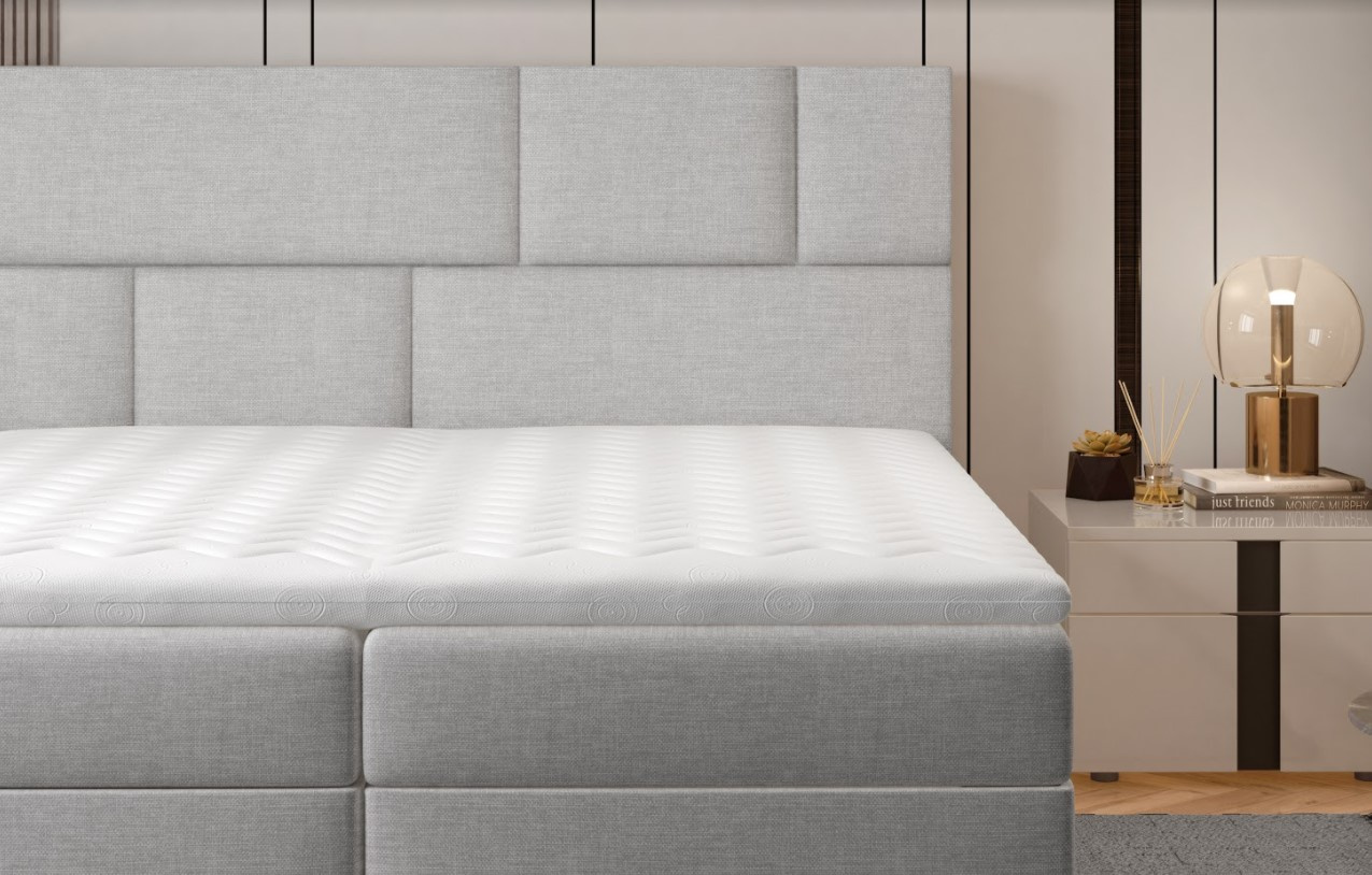 Postel Boxspring Florence s úložným prostorem na první pohled zaujme elegantním designem. Postel je vyrobena v kombinací dřeva a dřevotřísky s pěkným čalouněním z příjemného materiálu. Postel disponuje několika vkusnými doplňky jako je prošívané čelo či kovové nožky vysoké 3 cm. Pro dosažení optimálního pohodlí byla použita 15 cm vysoké oboustranné pružinové matrace typu Bonnel, která je vybavena z každé strany vrstvou PUR pěny T25. Tvrdost matrace H3 má potah na zip, který je pratelný na 40 st. - je hypoalergenní. Pro lepší pohodlí je vrchní část postele doplněna o tooper z pěny, který je vysoký 4 cm. Postel má dva úložné prostory na lůžkoviny. Boxspring zajišťuje dokonalou cirkulaci vzduchu a odvádí tak většinu vlhkosti mimo lůžko. Potahová látka jako na hlavní fotografii - žlutá látka. Na výběr máte z mnoha barevných variant. Maximální nosnost jedné postele 110 kg. Zboží dodáváme v demontu.