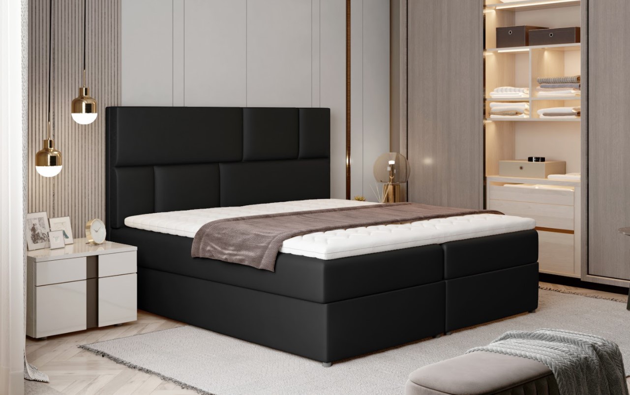 Postel Boxspring Florence s úložným prostorem na první pohled zaujme elegantním designem. Postel je vyrobena v kombinací dřeva a dřevotřísky s pěkným čalouněním z příjemného materiálu. Postel disponuje několika vkusnými doplňky jako je prošívané čelo či kovové nožky vysoké 3 cm. Pro dosažení optimálního pohodlí byla použita 15 cm vysoké oboustranné pružinové matrace typu Bonnel, která je vybavena z každé strany vrstvou PUR pěny T25. Tvrdost matrace H3 má potah na zip, který je pratelný na 40 st. - je hypoalergenní. Pro lepší pohodlí je vrchní část postele doplněna o tooper z pěny, který je vysoký 4 cm. Postel má dva úložné prostory na lůžkoviny. Boxspring zajišťuje dokonalou cirkulaci vzduchu a odvádí tak většinu vlhkosti mimo lůžko. Potahová látka jako na hlavní fotografii - černá látka. Na výběr máte z mnoha barevných variant. Maximální nosnost jedné postele 110 kg. Zboží dodáváme v demontu.