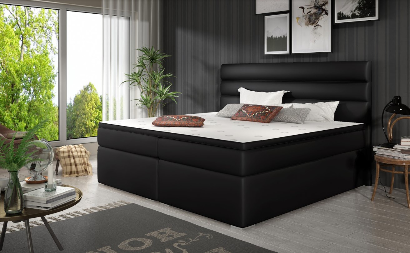 Postel boxspring Softy s úložným prostorem na první pohled zaujme elegantním designem. Lůžko disponuje několika vkusnými doplňky jako je prošívané čelo či kovové nožky. Pro dosažení optimálního pohodlí byla použita 25 cm vysoká oboustranná pružinová matrace typu bonnel, která je vybavena z každé strany vrstvou PUR pěny T2542+pružina. Tvrdost matrace H3 má hypoalergenní potah na zip. Pro lepší pohodlí je vrchní část postele doplněna o podložku z pěny. Postel má dva úložné prostory na lůžkoviny. Boxspring zajišťuje dokonalou cirkulaci vzduchu a odvádí tak většinu vlhkosti mimo lůžko. Potahová látka jako na hlavní fotografii - černá látka. Maximální nosnost jedné postele 110 kg. Zboží dodáváme v demontu.