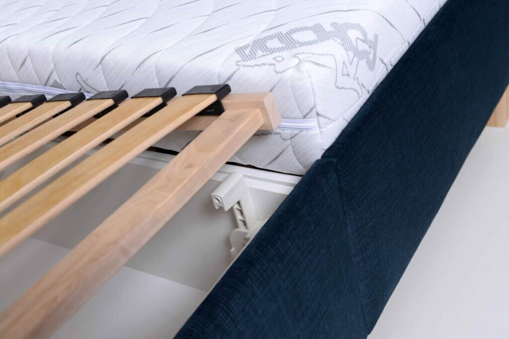 Moderní a vysoce kvalitní postel Celine, s úložným prostorem, je v základním provedení bez matrace v dezénu dle výběru (na obrázku Voss 86). Polohovací lamelový rošt DUOFLEX. Nohy jsou vysoké 15 cm v provedení chrom nebo dřevo v barevných variantách buk, palisandr, šedá nebo bílá (vybranou barvu dřevěných nožiček uveďte do poznámky). Základní korpus 31 cm. Přehoz a polštáře nejsou součastí postele. Maximální nosnost 130 kg. Lze vybrat z provedení 180 cm nebo 160 cm. Možnost výběru z celé kolekce látek. Zboží dodáváme v demontu.