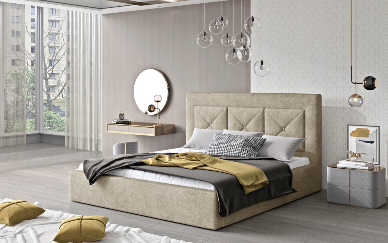 Elegantní čalouněná postel Cloe je vyrobena z vysoce kvalitních materiálů, odolných proti průvanu a oděru v dezénu Dora 21 (krémová). Postel Cloe má kovový rám s plynovým výtahem, ve kterém získáváme prostorný kontejner na lůžkoviny. Cloe je čalouněná postel s 93 cm vysokou a měkkou čelní deskou - je dokonalým řešením pro milovníky sledování televize v posteli a čtení knih. Součastí postele není matrace a doplňky uvedené na obrázku. Postel je k dispozici ve čtyřech velikostech. Spací plocha 140 x 200 cm. Zboží dodáváme v demontu.