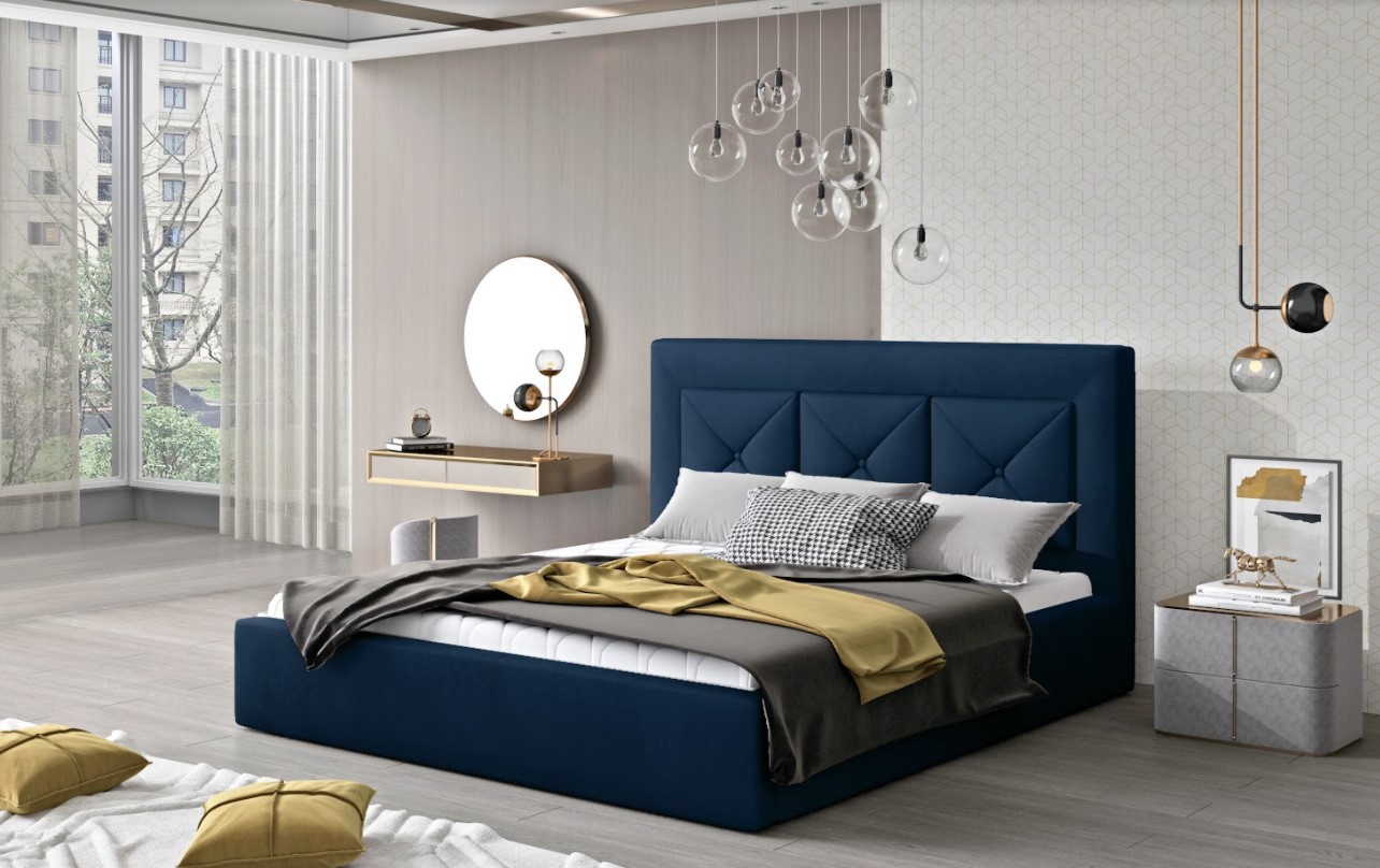Elegantní čalouněná postel Cloe je vyrobena z vysoce kvalitních materiálů, odolných proti průvanu a oděru v dezénu Monolith 77 (tmavě modrá). Postel Cloe má kovový rám s plynovým výtahem, ve kterém získáváme prostorný kontejner na lůžkoviny. Cloe je čalouněná postel s 93 cm vysokou a měkkou čelní deskou - je dokonalým řešením pro milovníky sledování televize v posteli a čtení knih. Součastí postele není matrace a doplňky uvedené na obrázku. Postel je k dispozici ve čtyřech velikostech. Spací plocha 180 x 200 cm. Zboží dodáváme v demontu.