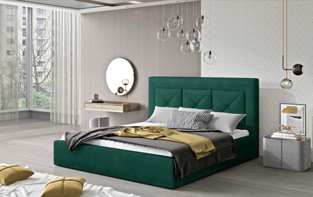 Elegantní čalouněná postel Cloe je vyrobena z vysoce kvalitních materiálů, odolných proti průvanu a oděru v dezénu Kronos 19 (zelená). Postel Cloe má kovový rám s plynovým výtahem, ve kterém získáváme prostorný kontejner na lůžkoviny. Cloe je čalouněná postel s 93 cm vysokou a měkkou čelní deskou - je dokonalým řešením pro milovníky sledování televize v posteli a čtení knih. Součastí postele není matrace a doplňky uvedené na obrázku. Postel je k dispozici ve čtyřech velikostech. Spací plocha 200 x 200 cm. Zboží dodáváme v demontu.