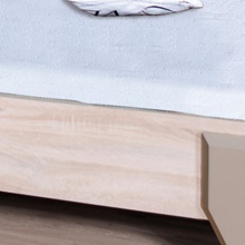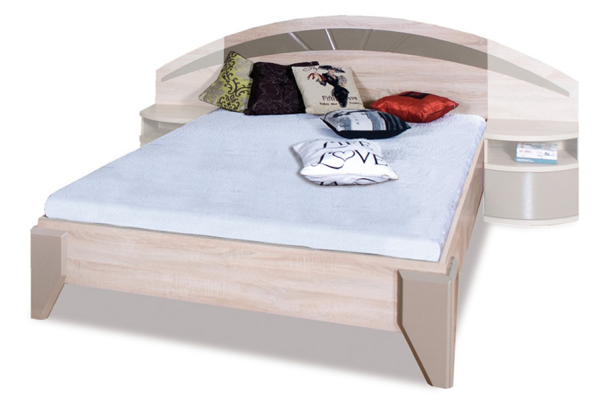 Postel je vyrobena z kvalitního lamina v barvě dub sonoma, nohy postele v dezénu cappuccino lesk. Čelo postele je čalouněné. Postel se dodává s roštem bez matrace. Zboží je dodáváno v demontu.