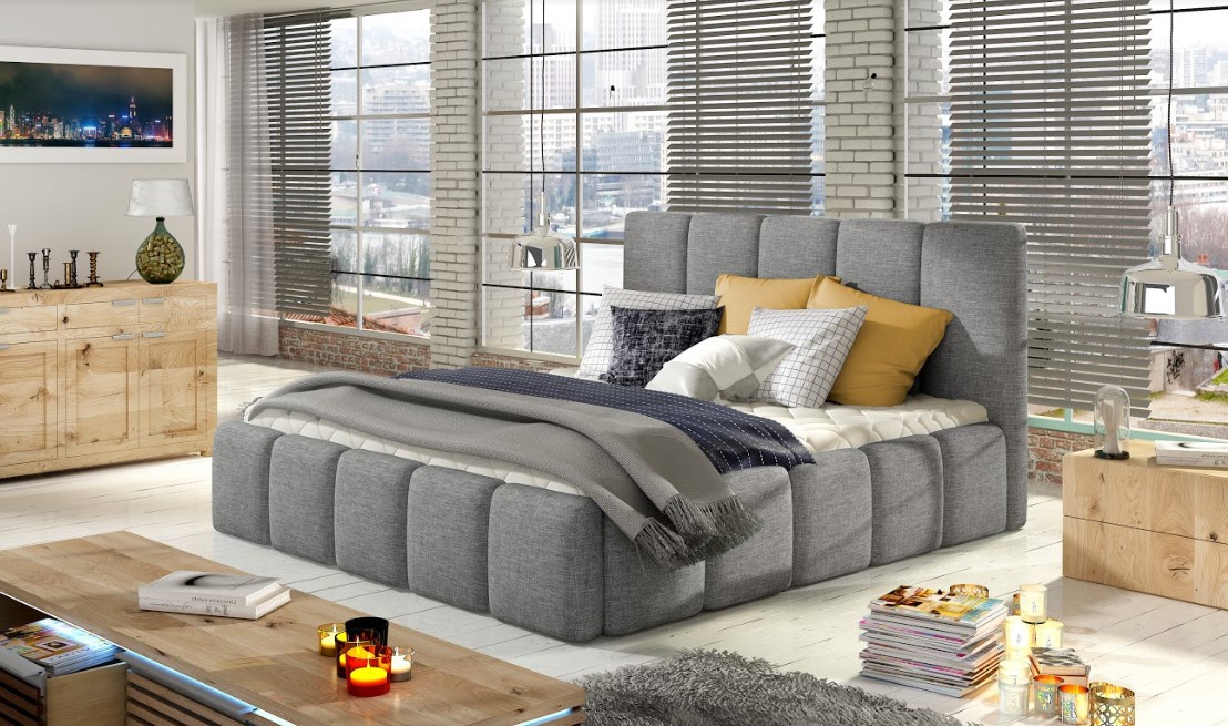 Postel vás potěší svým elegantním vzhledem a zároveň poskytne pohodlí na vysoké úrovni. Má čalouněný korpus i čelo postele, obojí ozdobně prošívané, vyplněné měkkou pružnou pěnou T25. Čalounění postele je odolné proti oděru a příjemné na dotek. Široká nabídka materiálů a barev zajistí, že si každý vybere tu pravou variantu do svého interiéru. Postel je dodávána s dřevěným roštem na pružinovém mechanismu, bez matrace. Postel je vybavena úložným prostorem na lůžkoviny. Potahová látka jako na hlavním obrázku - světle šedá látka.