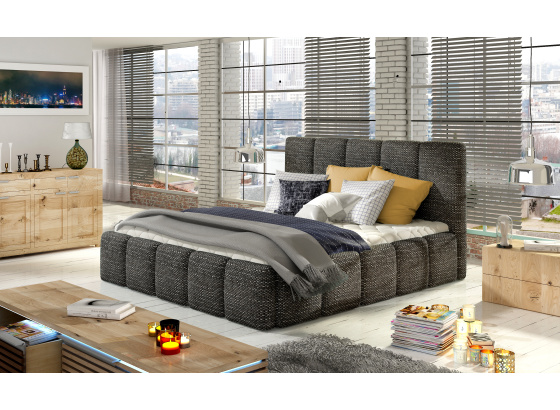 Postel Edvige má čalouněný korpus i čelo postele v dezénu Berlin 02 vyplněné měkkou pružnou pěnou T25. Potahová látka Berlin: příjemná na dotek, s velmi výraznou a zajímavou vazbou, s příměsí viskózy a bavlny. Postel je dodávána s dřevěným roštem na plynovém mechanismu, bez matrace. Postel je vybavena úložným prostorem na lůžkoviny. Nosnost jedné půlky postele 90 kg. Spací plocha 180x200 cm.