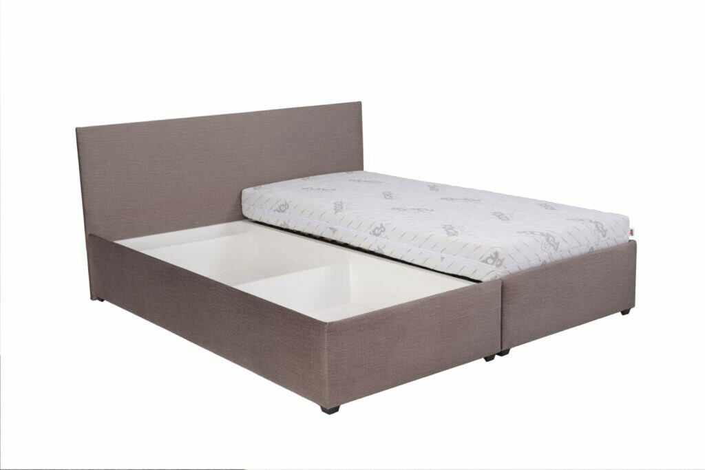 Moderní a vysoce kvalitní postel Ellen s úložným prostorem v dezénu dle výběru (na obrázku Voss 38) je v základním provedení s volně loženou matrací MIAMI s pratelným potahem. Lamelový rošt RELAX - bez kování. Nohy má plastové kluzáky výška 3 cm. Základní korpus 31 cm. Přehoz a polštáře nejsou součastí postele. Korpus na zátěž až 110 kg. Lze vybrat z provedení 180 cm nebo 160 cm. Možnost výběru v z celé kolekce látek. Zboží dodáváme v demontu.