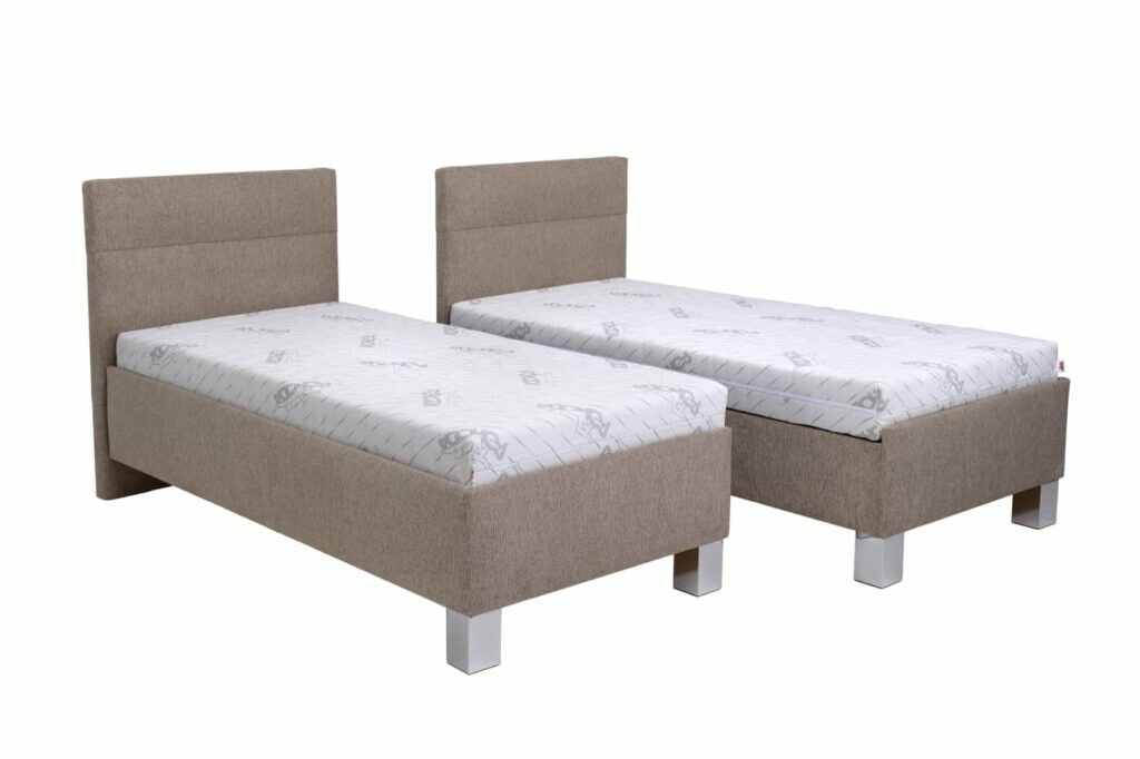 Moderní a vysoce kvalitní postel Fabio s úložným prostorem, je v základním provedení bez matrace v dezénu dle výběru (na obrázku Aragon 20). Polohovací lamelový rošt DUOFLEX. Nohy jsou vysoké 15 cm v provedení chrom nebo dřevo v barevných variantách buk, palisandr, šedá nebo bílá (vybranou barvu dřevěných nožiček uveďte do poznámky). Základní korpus 31 cm. Přehoz a polštáře nejsou součastí postele. Maximální nosnost až 130 kg. Postel lze rozdělit na 2 samostané postele. Lze vybrat z provedení 180 cm nebo 160 cm. Možnost výběru z celé kolekce látek. Zboží dodáváme v demontu.