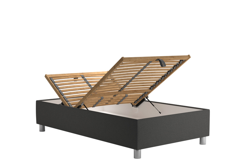 Lůžko s polohovacím lamelovým roštem P 12 s mechanickým polohováním hlavy (7 poloh) a nohou ( 1 poloha). Rošt má 28 lamel ve výkyvných kaučukových pouzdrech s popruhem proti přetížení. Postel je dodávána včetně matrace Nelly. Úložný prostor lůžka se otvírá za pomocí plynových pístů. Maximální doporučená nosnost 110 kg. Výška lehací plochy 53 cm. Nohy výška 10 cm.