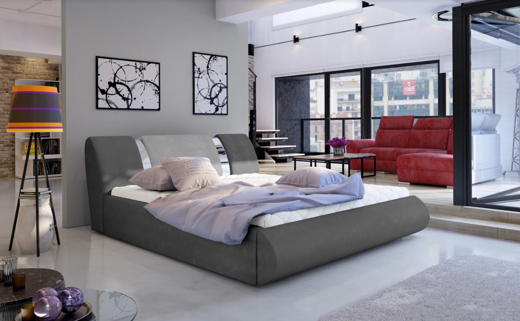 Elegantní lůžko má čalouněný korpus i čelo postele, které je polstrované měkkou pružnou pěnou T25. Čalounění postele je odolné proti oděru a příjemné na dotek. Pozornost k detailům a jemným dekoracím ve formě chromovaných pruhů a kombinací kontrastních barev čela dodá posteli další kouzlo. Mimo to má postel úložný prostor, kde můžete uskladnit např. ložní prádlo. Široká nabídka barev a druhů čalounění zajistí, že si každý vybere tu pravou variantu do svého interiéru. Postel neobsahuje matraci. Každý uživatel proto může libovolně přizpůsobit typ matrace svým vlastním preferencím. Potahová látka jako na hlavním obrázku - tmavě šedá/světle šedá látka.