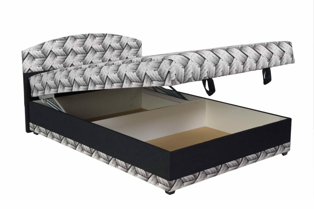 Elegantní a vysoce kvalitní postel HELEN s úložným prostorem v dezénu dle výběru (na obrázku: Megan 368-černá a Mosa-vzor). Postel je v základním provedení se smrkovým roštem, otvírání od nohou, a pružinovou matrací KOMBIFLEX. Hlavové čelo je v základním provedení jednostranně čalouněné. Nohy jsou plastové kluzáky - výška 3 cm. Nosnost postele 110 kg. Výška ložné plochy 52 cm. Nelze přidat boční čelo. Možnost výběru z celé kolekce látek. Zboží dodáváme v demontu.
