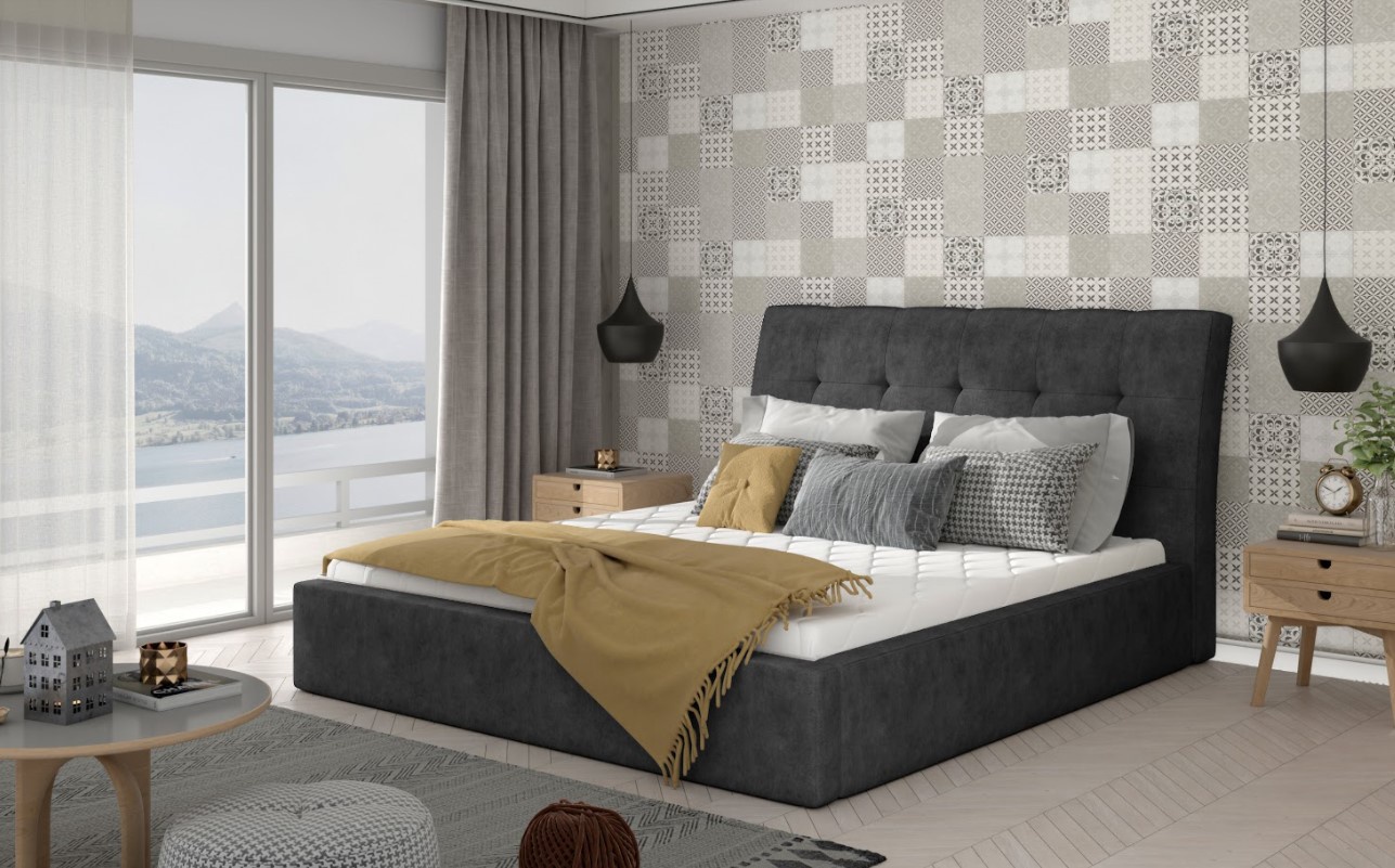 Postel Inge je jednoduchý kus nábytku obohacený o zajímavé prošívané čelo postele v dezénu Dora 95 (tmavě šedá). Klasické uspořádání postele Inge bylo přerušeno vkusnou dekorací na opěrce hlavy, jejíž měkká a pružná výplň ve formě pěny T25 vytváří tvarované opěradlo. Postel je s kovovým rámem a plynovým zvedákem, díky čemuž získáváme nádobu na ložní prádlo, kterou lze snadno a tiše zvednout bez použití síly. Postel Inge je čalouněný kus nábytku vyrobený z vysoce kvalitních materiálů, odolný proti oděru a vyblednutí. Součastí postele není matrace a doplňky uvedené na obrázku. Postel je k dispozici ve čtyřech velikostech. Spací plocha 200 x 200 cm. Zboží dodáváme v demontu.