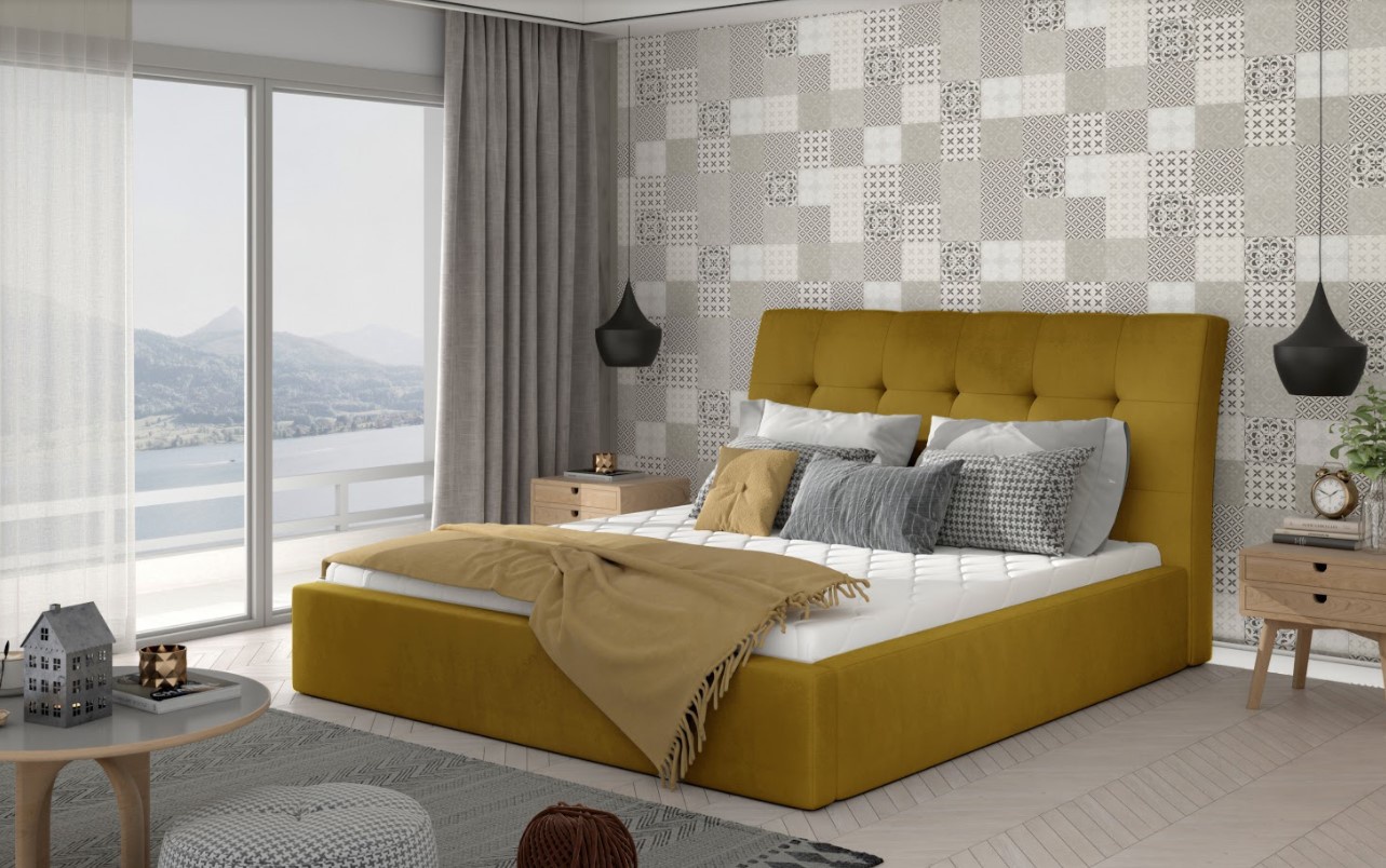Postel Inge je jednoduchý kus nábytku obohacený o zajímavé prošívané čelo postele v dezénu Monolith 48. Klasické uspořádání postele Inge bylo přerušeno vkusnou dekorací na opěrce hlavy, jejíž měkká a pružná výplň ve formě pěny T25 vytváří tvarované opěradlo. Postel je s kovovým rámem a plynovým zvedákem, díky čemuž získáváme nádobu na ložní prádlo, kterou lze snadno a tiše zvednout bez použití síly. Postel Inge je čalouněný kus nábytku vyrobený z vysoce kvalitních materiálů, odolný proti oděru a vyblednutí. Součastí postele není matrace a doplňky uvedené na obrázku. Postel je k dispozici ve čtyřech velikostech. Spací plocha 200 x 200 cm. Zboží dodáváme v demontu.