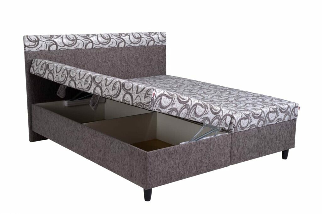 Moderní a vysoce kvalitní postel IRENE s úložným prostorem, je v základním provedení s pevným roštem DTD, pružinová matrace KOMBIFLEX, má otevírání z boku. Nohy má plastové v barvě černé, vysoké 12 cm. Látkové provedení v dezénu dle výběru (na obrázku Matrix 10 a Fatra 50(vzor). Nosnost postele 110 kg na osobu. Lze vybrat z provedení 180 cm nebo 160 cm. Možnost výběru z celé kolekce látek. Zboží dodáváme v demontu.