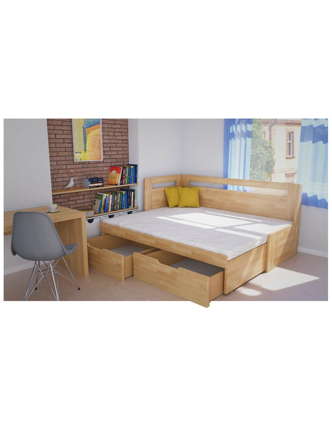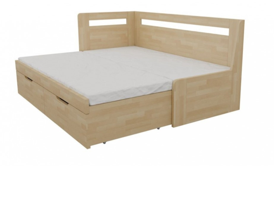 Postel KOMBI je vyrobena z masivního bukového dřeva o síle 30 mm. Postel má dvě zásuvky s úložným prostorem. Pevnost a stabilita je zajištěna excentrickým kováním. Postel dodáváme vč. laťového roštu z masivních smrkových latí. Součástí postele je jedno dlouhé a jedno krátké čelo, které lze dát z pravé nebo levé strany. Vámi požadovanou stranu uveďte prosím do poznámky v objednávce. Matrace není součástí postele. K posteli doporučujeme matraci UNI DUO, matraci UNI DUO 10/10 polaris, matraci UNI DUO 12/12 polaris. Rozkladem vznikne spací plocha 180x200/ 160x200. Povrchová úprava postele - standartně lak, provedení přírodní buk. Zboží dodáváme v demontu.