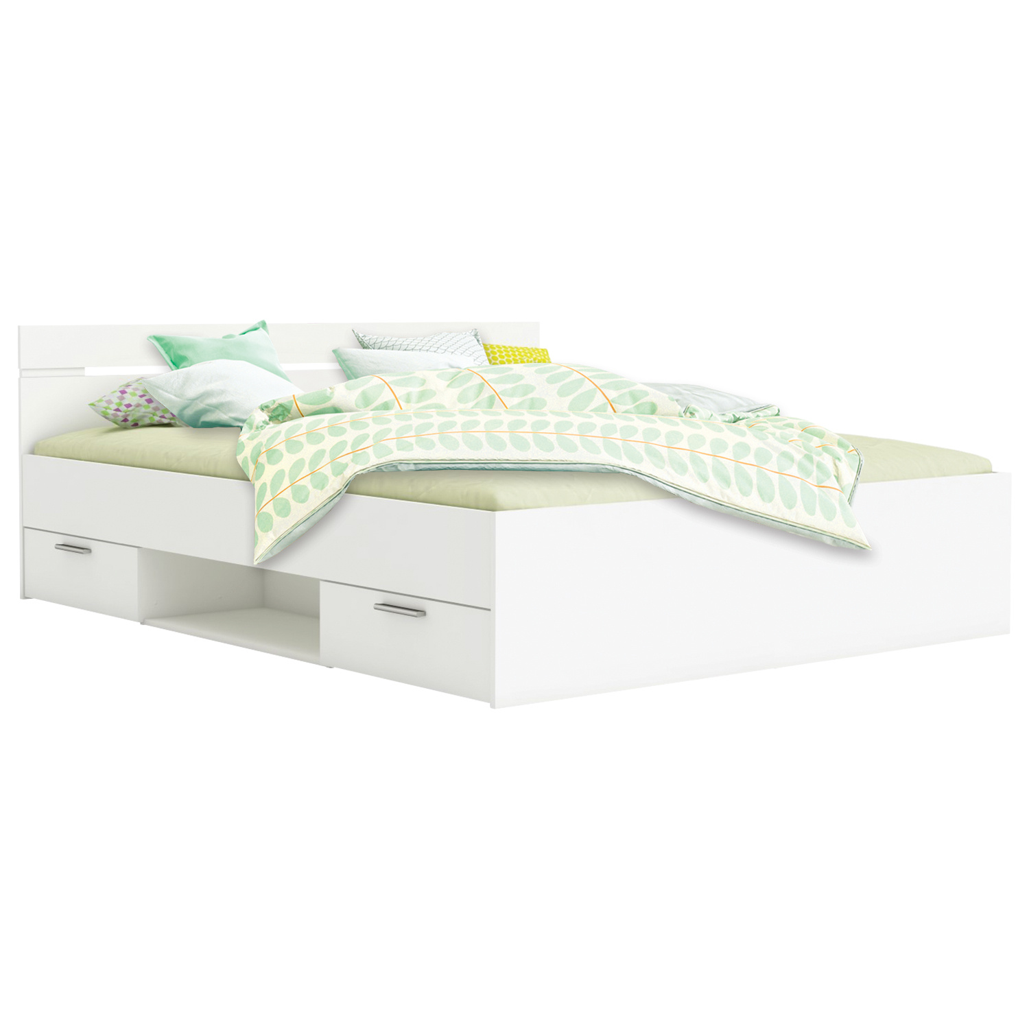 Barevné provedení perleťově bílá, 2 úložné zásuvky s kovovými pojezdy jsou v ceně, matrace a rošt nejsou v ceně, doporučený rozměr matrace 160 × 200 cm nebo 2 kusy 80 × 200 cm k posteli je nutno použít samonosný rošt v rámu 160 × 200 cm zde. Zboží je dodáváno v demontu.