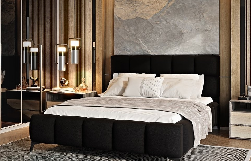Čalouněná postel v barevném provedení Flores 10. Vysoké čelo i boční části postele jsou vybaveny pěnou, která je podélně protažená a zdobená podélným prošitím. Postel má 13,5 cm vysoké ocelové nohy. Pod výklopným roštem se nachází úložný prostor. Postel je dodávána bez matrace. Zboží dodáváme v demontu.