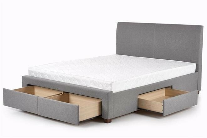 Čalouněná postel Modena je vyrobena z materiálu látka/přírodní dřevo. Potahová látka je v barvě šedá. Postel disponuje úložnými prostory ve formě šuplíků. Cena postele je včetně roštu, bez matrace. K této posteli doporučujeme matraci POLARIS.