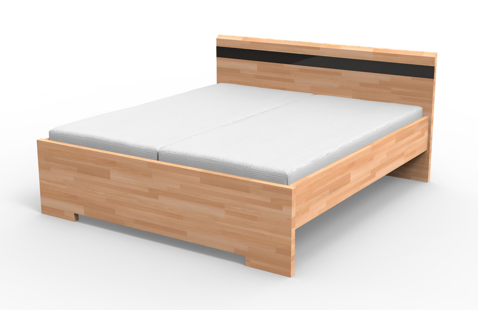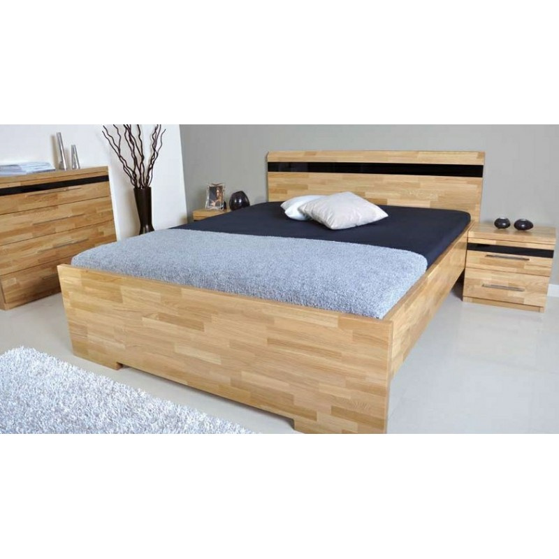 Postel je vyrobena z masivu v barvě buk cink (parketový design). Běžně se vyrábí bez skla. Možnost výběr skla : BS-bílé sklo, ČS-černé sklo, MS-mocca sklo za příplatek 1.300,-Kč. Možnost nastavitelného kování. Tloušťka masivu je 40 mm, bočnice 27 mm. Výška čela u hlavy 95 cm, po horní hranu bočnice 50 cm. Je možno objednat moření za příplatek 10%. Postel je dodávána bez roštu a matrace. Zboží dodáváme v demontu.