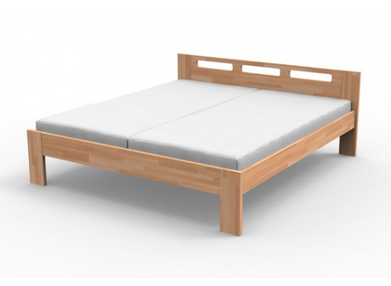 Postel je vyrobena z masivu buk cink (parketový desing) s možností nastavitelného kování. Tloušťka masivu je 27/19 mm, bočnice 27 mm. Výška čela u hlavy 75 cm, po horní hranu bočnice 40 cm. Cena postele je uvedena bez roštu a bez matrace. Postel nabízíme v několika rozměrech. Zboží dodáváme v demontu.
