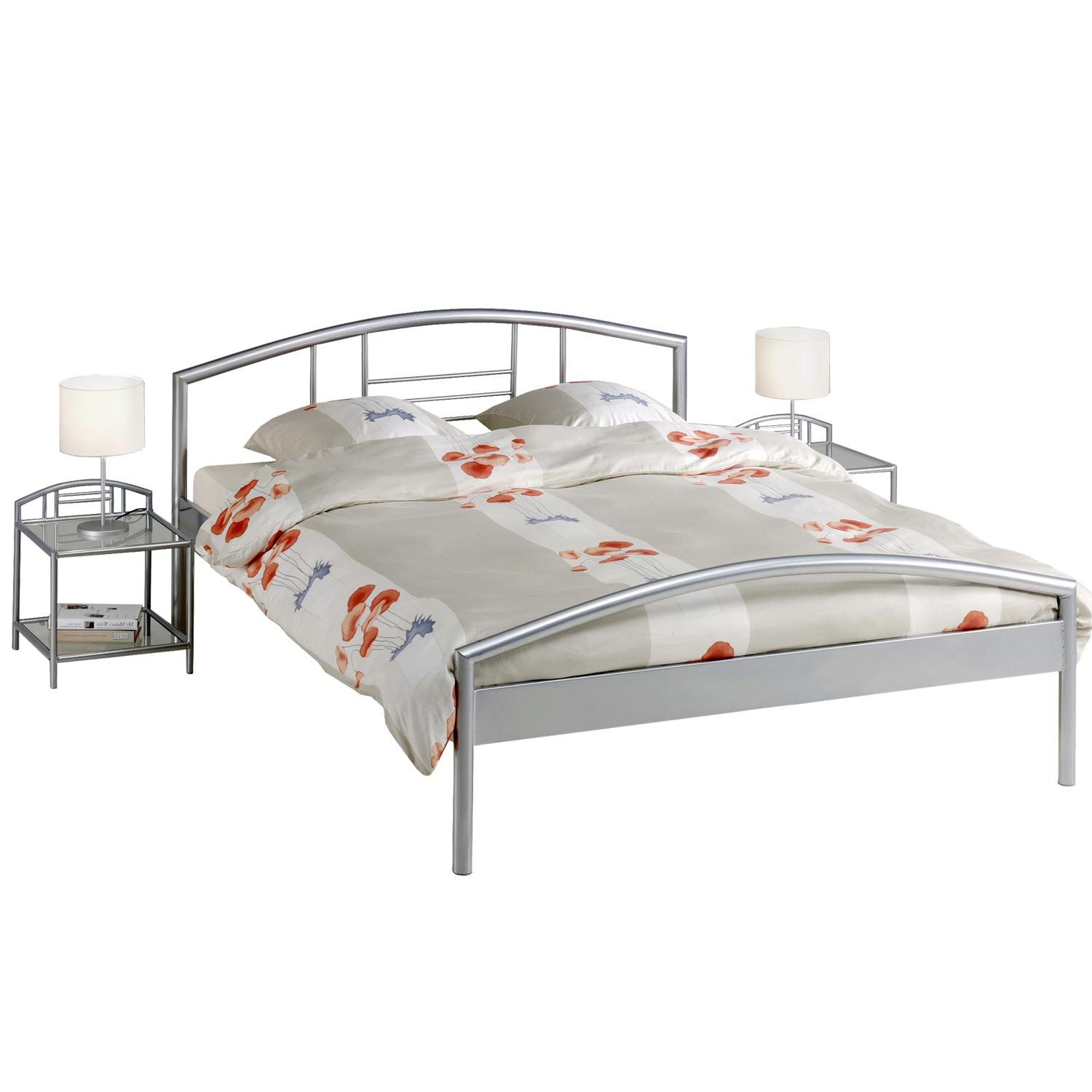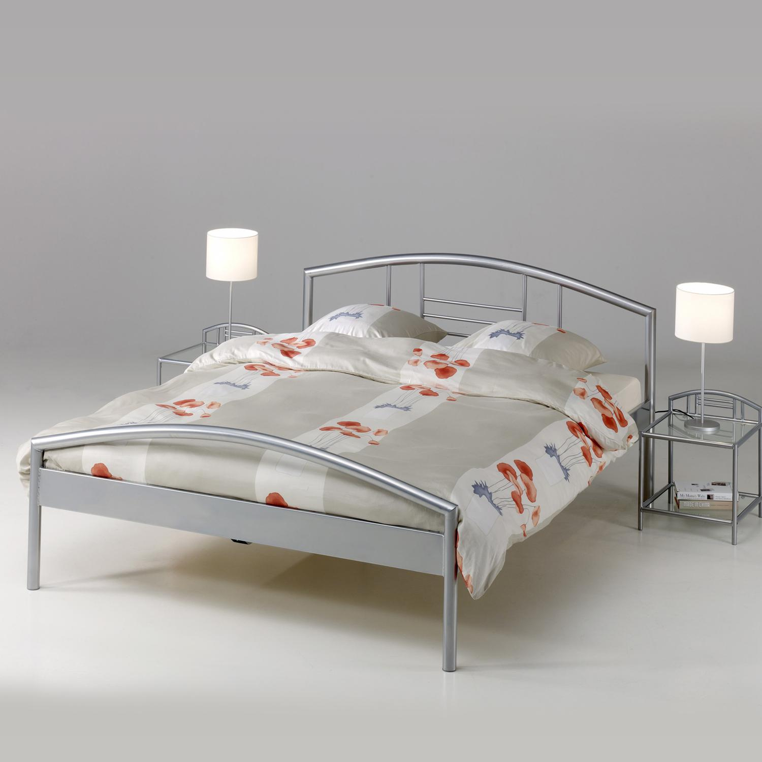 Kovová konstrukce, barevné provedení stříbrná, výška sedu 42 cm, cena bez roštu a matrace, doporučený rozměr matrace 160 × 200 cm (M3, M13, M7, M15, M27, M29, M25), rošt R2 noční stolky (3020), lampy a dekorace nejsou v ceně. Zboží je dodáváno v demontu.