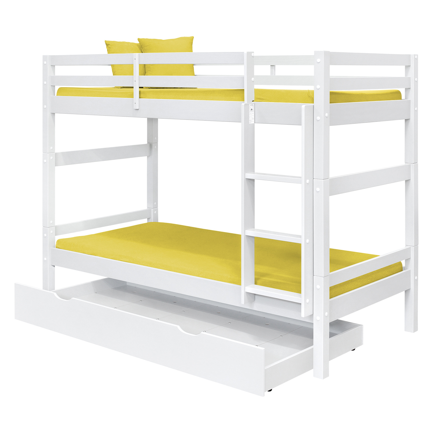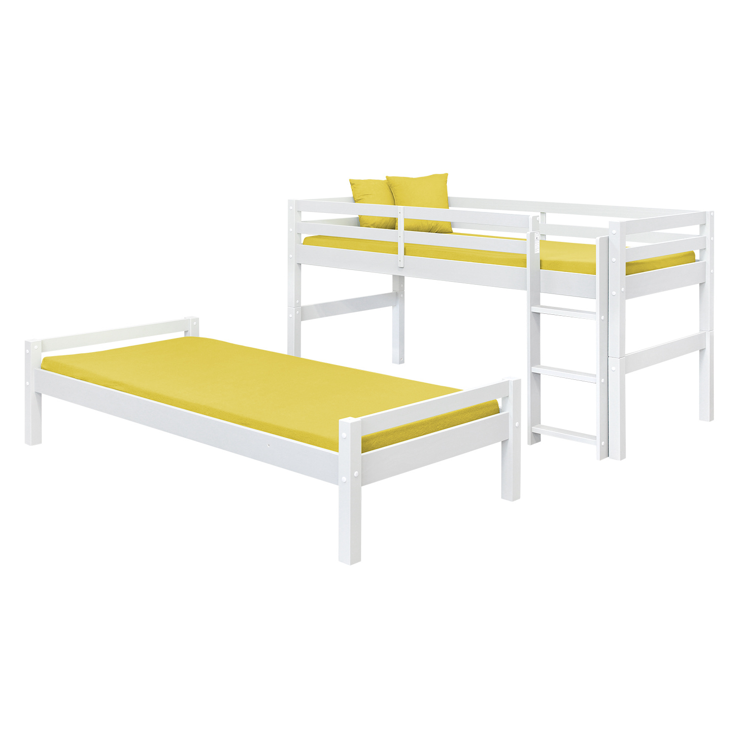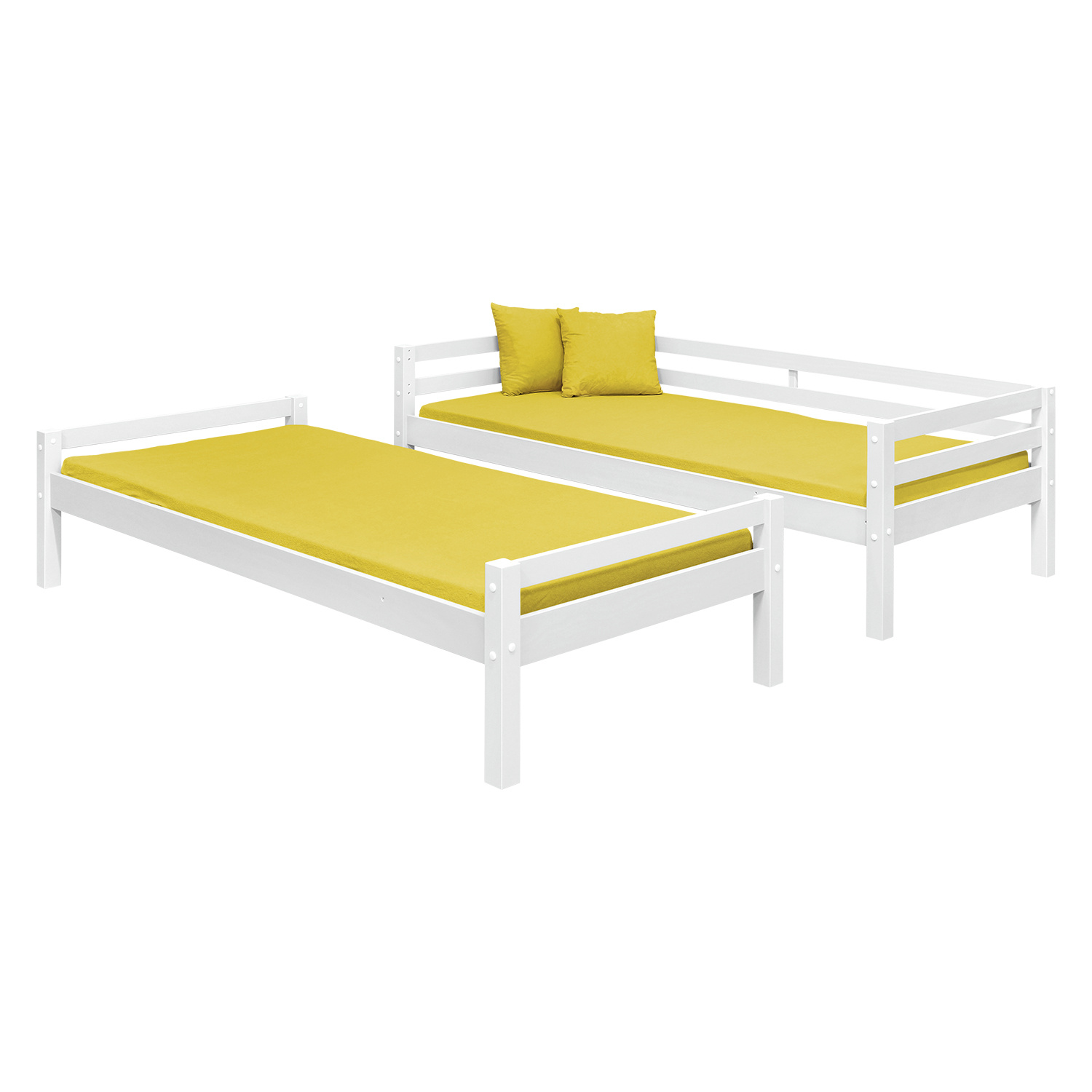 Materiál masiv borovice, barevné provedení bílý lak, rozložitelná na dvě samostatná lůžka, jedno lůžko může být zvýšené, zábrany na horním lůžku mohou být variabilně odebrány, dva laťkové rošty jsou v ceně, matrace nejsou v ceně, doporučený rozměr matrací 90 × 200 cm, maximální výška matrací 15 cm, kombinace rozložení palandy jsou znázorněny na fotu. Zboží je dodáváno v demontu.