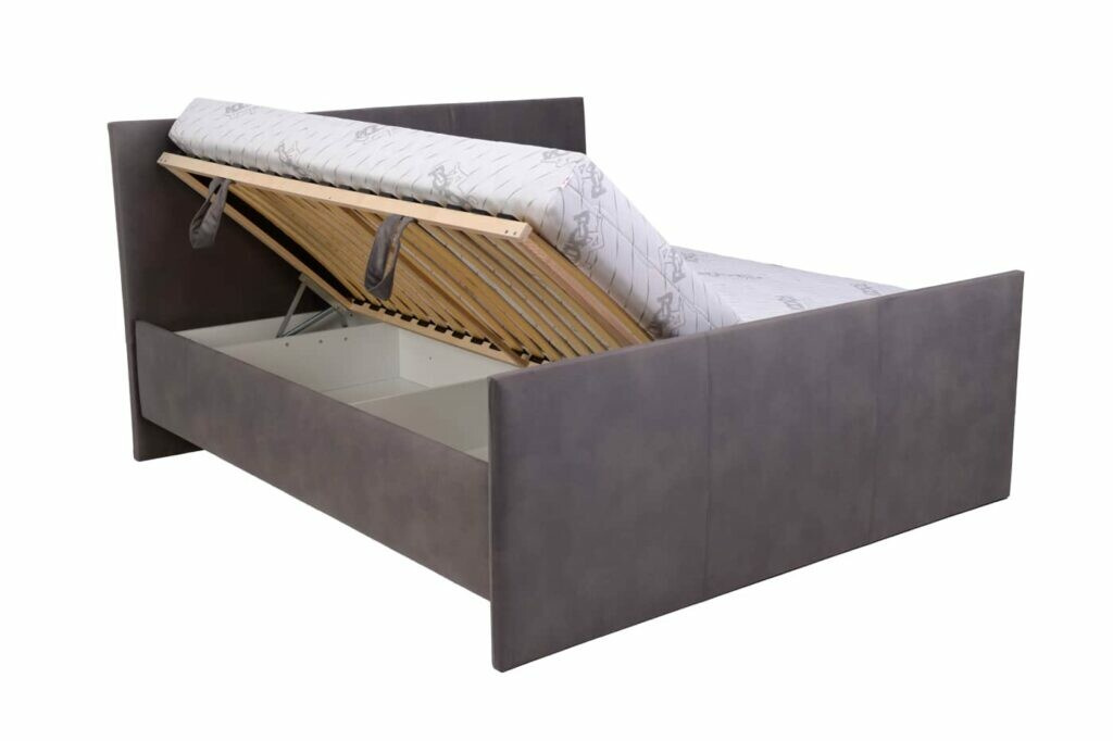 Moderní čalouněná postel Rachel s úložným prostorem v dezénu dle výběru (na obrázku Letto 95) je v základním provedení bez matrace a s lamelovým roštem Relax, otvírání z boku. Lze vybrat v provedení šíře 160 cm nebo 180 cm. Cena bez plédů a polštářů. Výběr látek z celé kolekce barev. Maximální nosnost 130 kg. Zboží dodáváme v demontu.