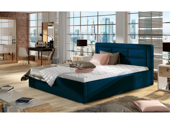 Elegantní lůžko ROSANO má čalouněný korpus i čelo postele, které je polstrované měkkou pružnou pěnou T25 a ozdobně prošité do obdélníků. Čalounění postele je odolné proti oděru a příjemné na dotek. Široká nabídka barev a druhů čalounění zajistí, že si každý vybere tu pravou variantu do svého interiéru. Postel disponuje kovovým roštem a plynovým zdvihacím mechanismem umožňujícím intuitivní a bezproblémové zvedání horní části postele, aby bylo možné využít prostorný kontejner pro ložní prádlo umístěný pod výklopným roštem. Postel neobsahuje matraci. Každý uživatel proto může libovolně přizpůsobit typ matrace svým vlastním preferencím. Potahová látka jako na hlavním obrázku - modrá.