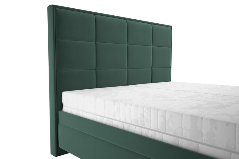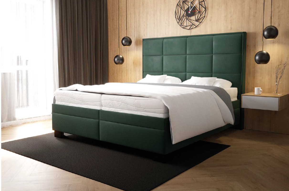 Postel Sabrina je nabízena s elegantními dřevěnými nožkami o výšce 10 cm a designově zdobeným čelem v potahové látce dle výběru. Disponuje polohovatelnými rošty a je dodávána s matrací Ivana de Luxe. Postel R-BED Sabrina disponuje úložným prostorem, otvírání od nohou pomocí plynových pístů. Doporučená nosnost roštu 130 kg. Výška lehací plochy s matrace 69,5 cm.