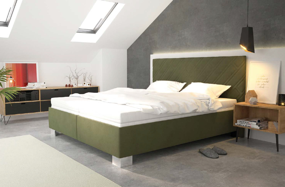 Postel Sylva je nabízena s elegantními dřevěnými nožkami o výšce 10 cm a designově zdobeným čelem v potahové látce dle výběru. Disponuje polohovatelnými rošty a je dodávána s matrací Nelly plus. Postel R-BED Sylva disponuje úložným prostorem, otvírání od nohou pomocí plynových pístů. Doporučená nosnost roštu 110 kg. Výška lehací plochy s matrace 58 cm.