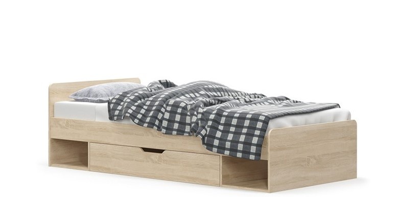 Jednolůžková postel z lamina o síle 16mm z kolekce Tips. Postel s úložným prostorem nabízíme v dezénu dub sonoma. Hrany lamina chrání ABS o síle 0,5mm. Postel dodáváme bez roštu a matrace. Kombinujte dle potřeby i s dalšími prvky z kolekce Tips, kterými vybavíte nejen obývací, ale i studenský pokoj. Zboží dodáváme v demontu.