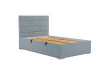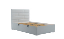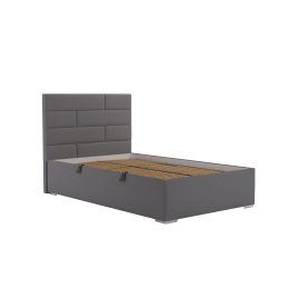 Postel je nabízena s elegantními dřevěnými nožkami o výšce 3,5 cm v potahové látce dle výběru. Postel disponuje úložným prostorem. Doporučená nosnost roštu 130 kg. Výška lehací plochy bez matrace 37,5 cm.