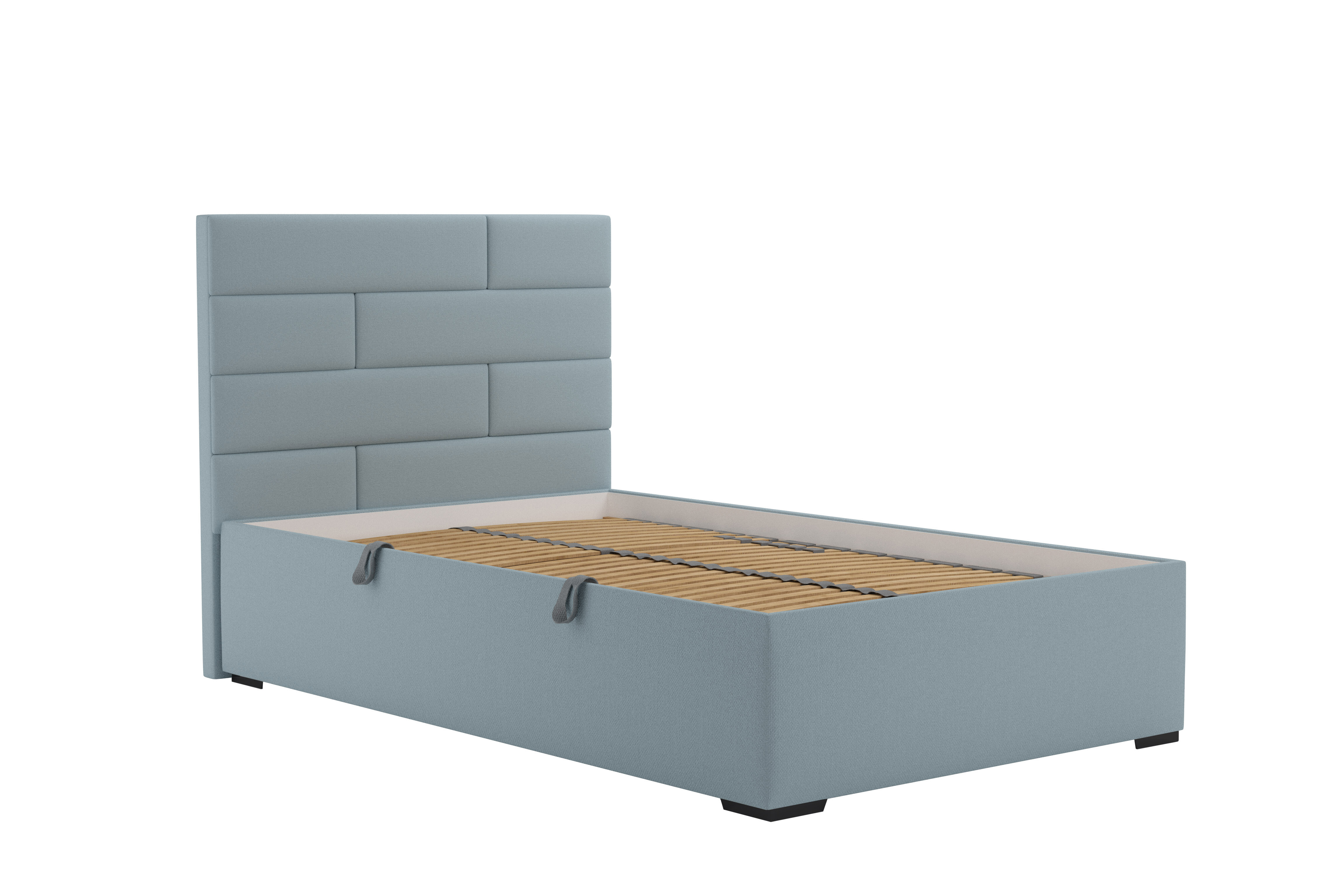 Postel je nabízena s elegantními dřevěnými nožkami o výšce 3,5 cm v potahové látce dle výběru a je dodávána s matrací Nelly plus. Postel disponuje úložným prostorem. Doporučená nosnost roštu 110 kg. Výška lehací plochy s matrací je 58,5 cm.
