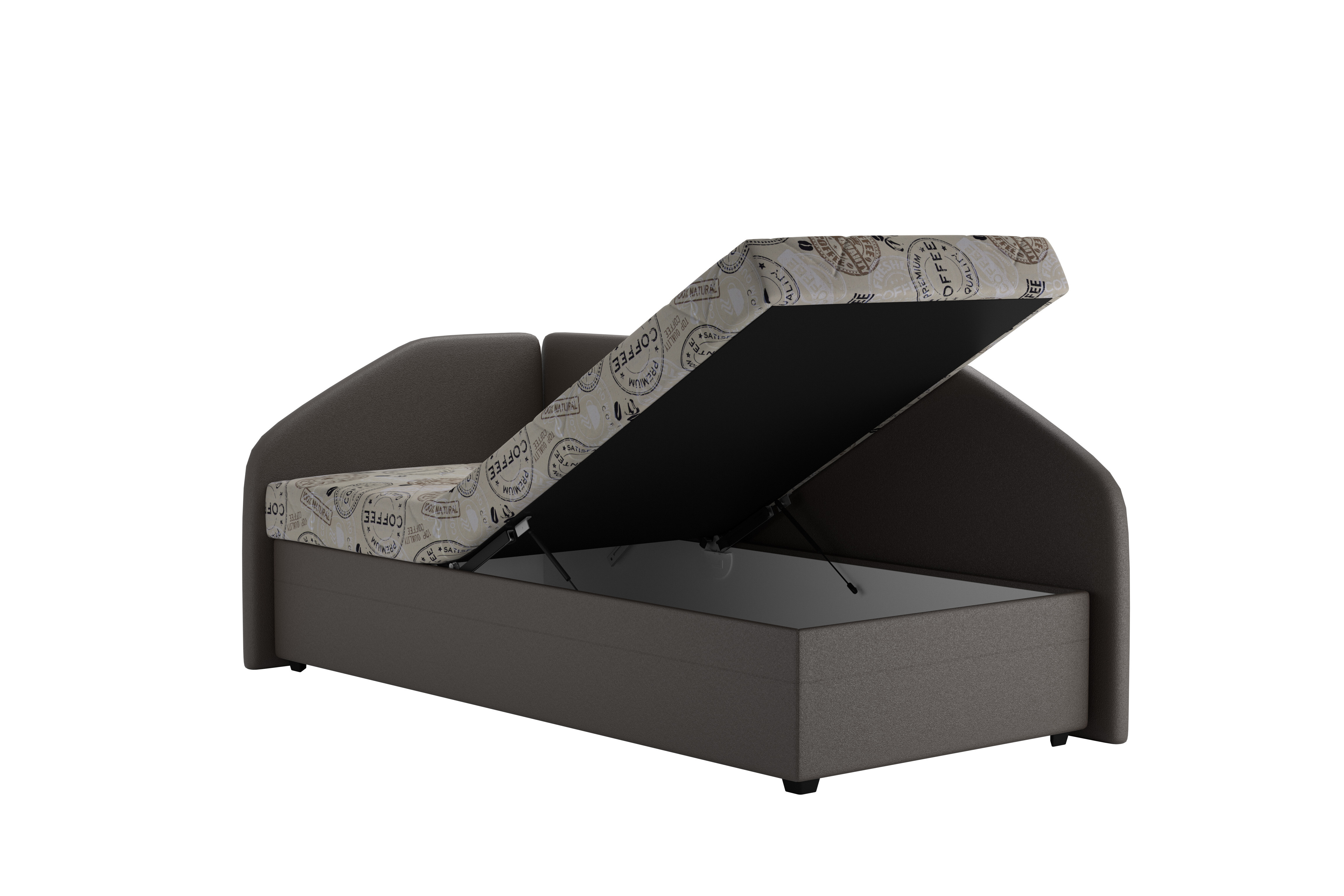 Praktická rohová postel v barevném provedení Coffe /Trinity 8 s matrací Alena. Matrace je uložena pevně fixovaném lamelovém roštu, se kterým je společně očalouněna. Kvůli pevnému spojení lamelového rámu a matrace není možné matraci vyjímat a otáčet. U matrace lze mechanicky polohovat hlavu a nohy. Přístup do úložného prostoru je možný od nohou. Provedení na hlavním obrázku pravé. Maximální doporučená nosnost 105 kg. Lze zvolit mezi pravým nebo levým provedením. Vámi zvolenou variantu uveďte prosím do poznámky. Na obrázku provedení levé. Výška lehací plochy 52 cm.